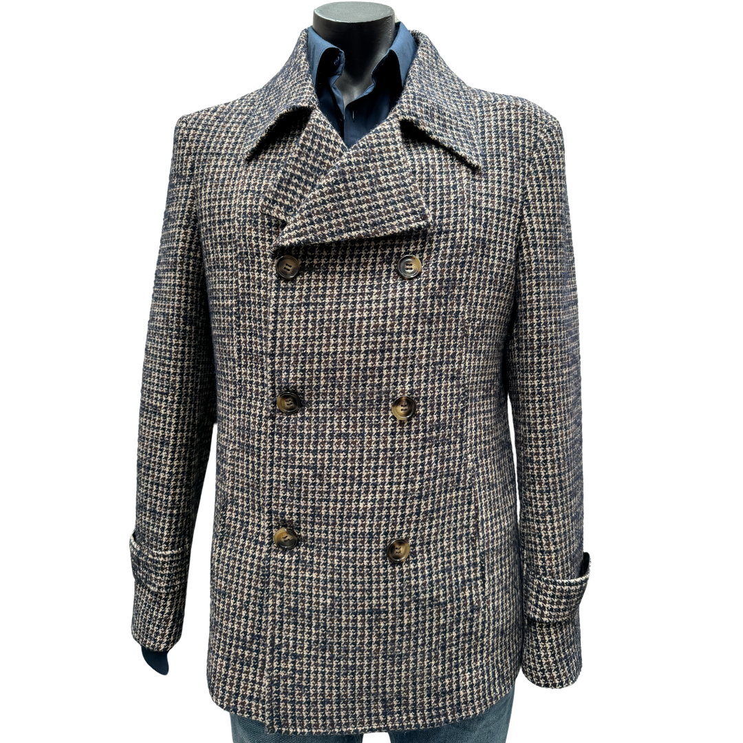 Wool ploy mix , double treated.jacket nice on , and nice for cold weather , only.one left